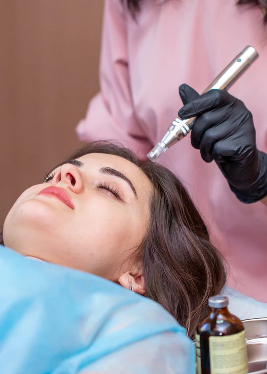 Nous utilisons des stylos électriques à micro-aiguilles spécialement conçus pour le microneedling, stimulant la circulation sanguine et la régénération des follicules pileux. Nous associons souvent cette méthode à des solutions topiques enrichies en nutriments pour des résultats optimaux en matière de repousse capillaire.